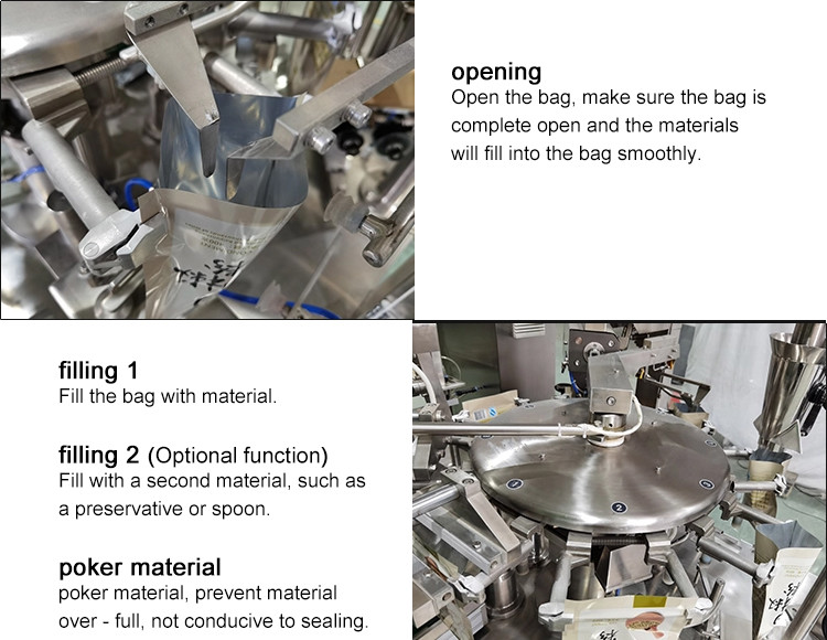 | جریان کار | دادن کیسه→کدگذاری→باز کردن کیسه (یا باز کردن کیسه زیپدار)→پر کردن→کمکی→تخلیه→آببندی حرارتی→شکلدهی و تولید محصولات. | ||